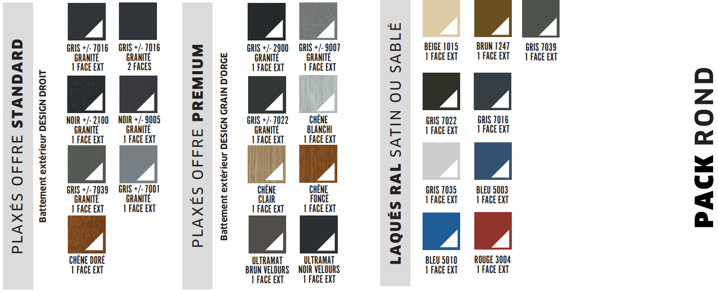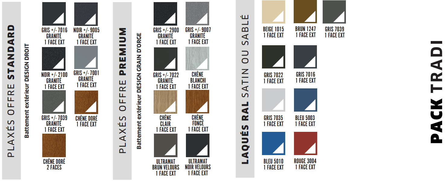 COLORIS DISPONIBLES SELON CHAQUE PACK ESTHETIQUE